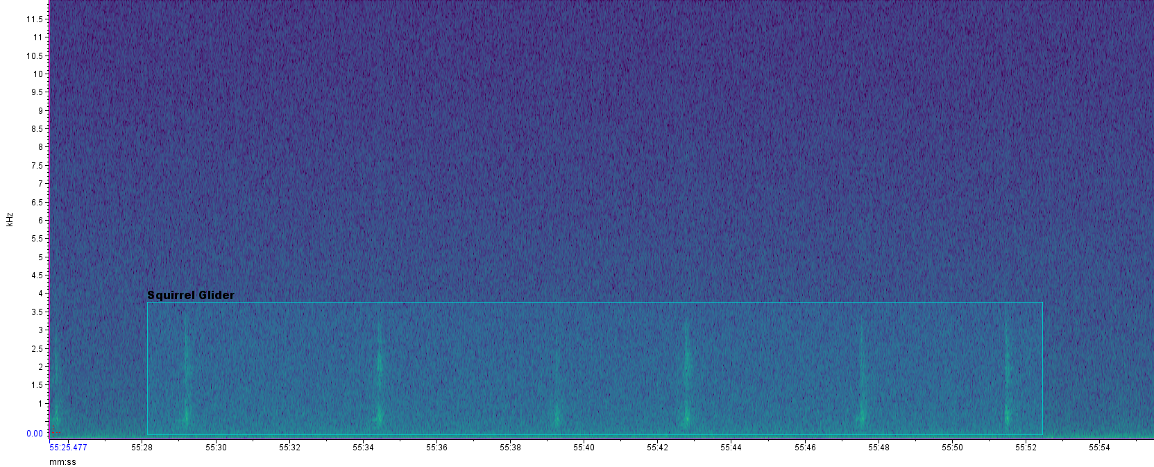 Without acoustic monitoring, Squirrel Glider would almost certainly have remained undetected. The species called infrequently (around 10 detections in total) and primarily between midnight and 4 a.m., well outside typical spotlighting windows.