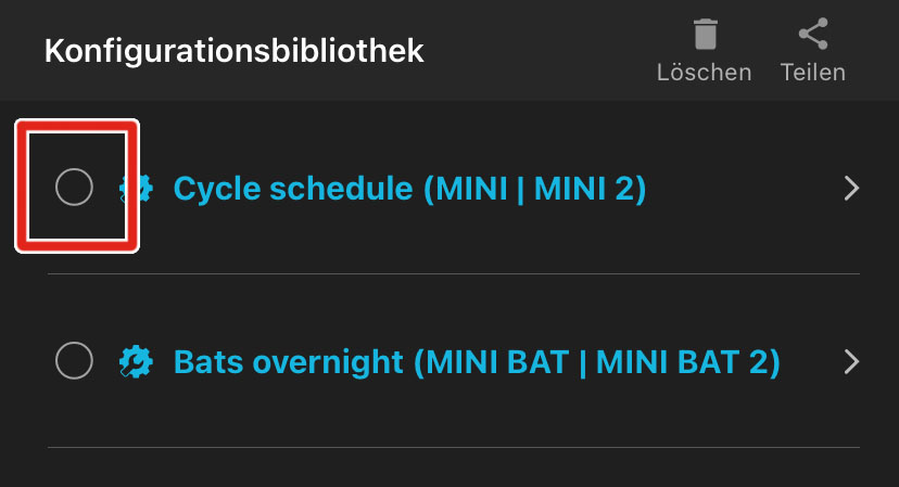 Konfigurationsdateien können im Bereich Konfigurationsbibliothek der Song Meter Configurator-App oder von einer in den Song Meter Micro 2 eingesteckten SD-Karte geladen werden.