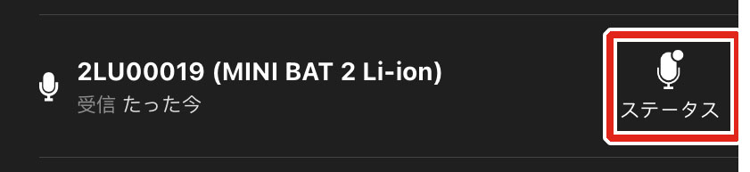 このアイコンをタップして[ステータス]画面を終了し、[レコーダー]画面に戻ります。