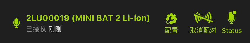 示例:"2LA00021 (MINI 2 Li-ion)。已收到:刚刚。” 状态图标显示在最右边。
