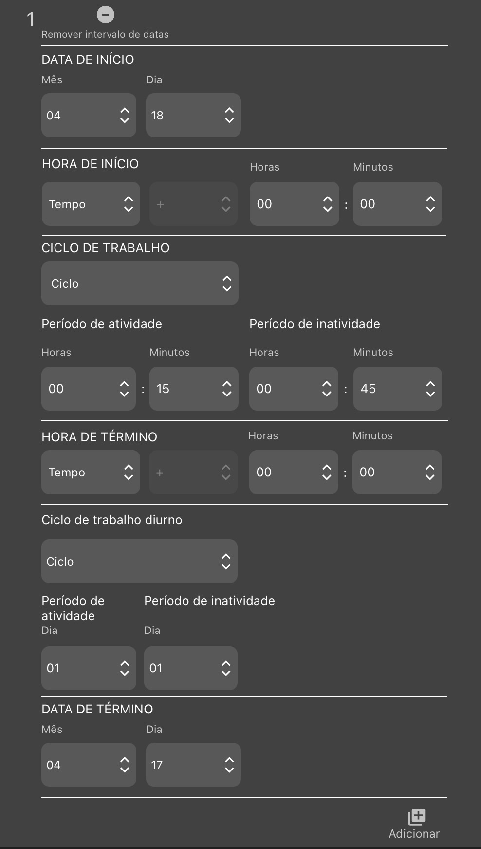 - Programações predefinidas