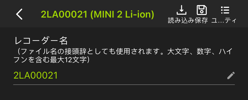 [6] レコーダー名と[Bluetoothビーコンの送信]設定は、設定ファイルでは設定できません。これらの設定を変更するには、ペアリングされたレコーダーの直接設定を行う必要があります 。