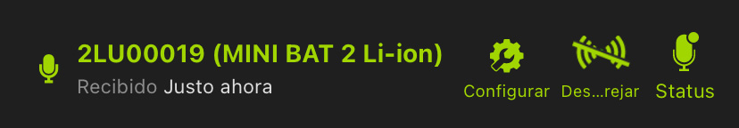 Ejemplo: "2LA00021 (MINI 2 Li-ion). Received: Just now." ("2LA00021 (MINI 2 Li-ion). Recibido: Ahora") Aparecerá un icono Status (Estado) en el extremo derecho.