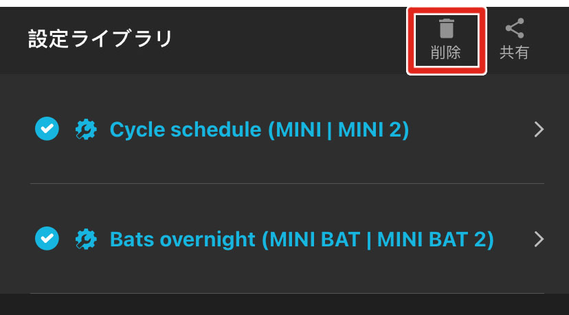 1. 読み込む設定ファイルが設定ライブラリに保存されていることを確認します。