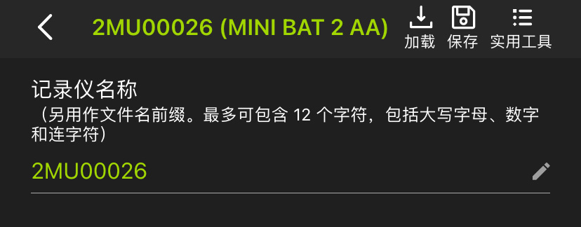点击即可打开配置编辑器屏幕,可以在其中更改已配对的记录仪的设置并执行许多其他功能。更多信息,请参阅 配置编辑器屏幕