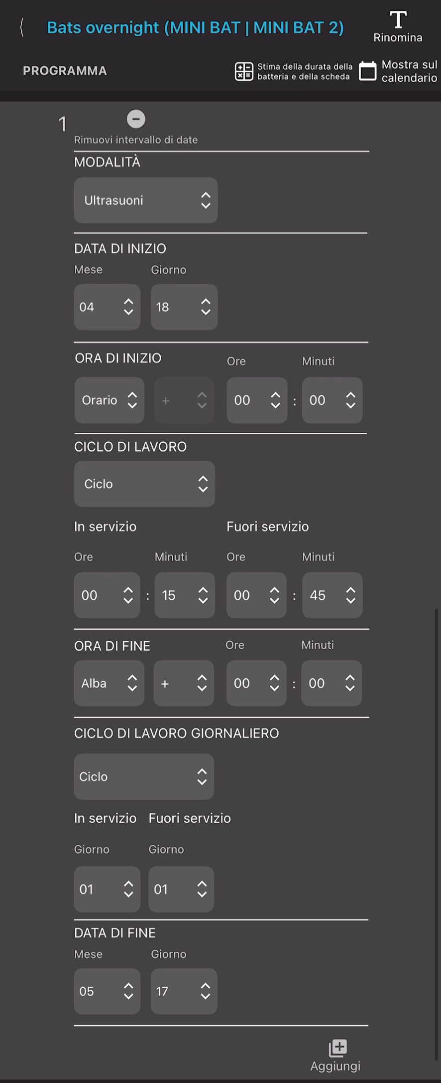 Toccare per aprire la Stima della durata della batteria e della scheda.