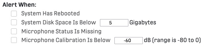 The SMART System can send email alerts to any number of email addresses in response to the following conditions: